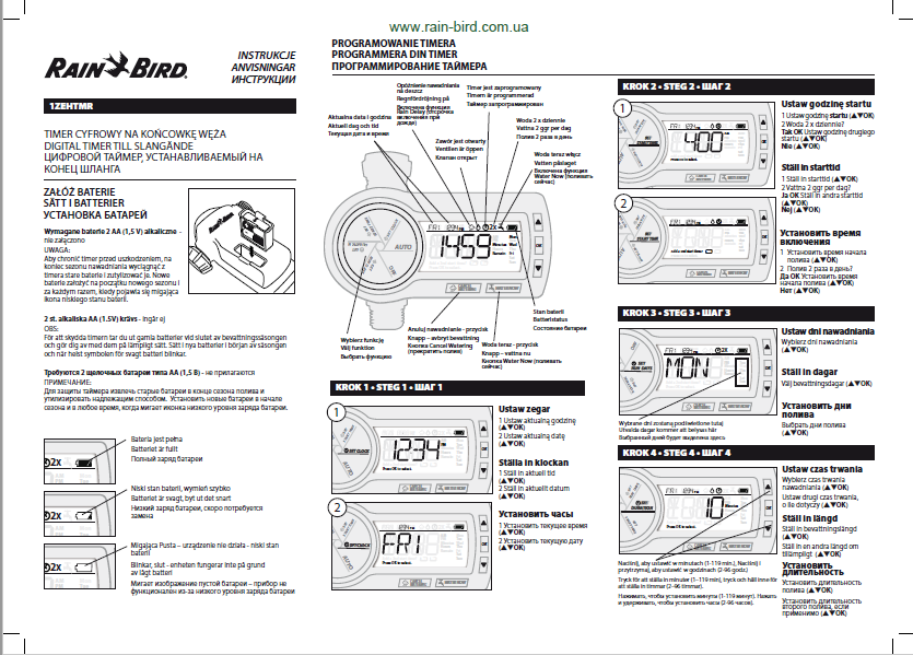 Автоматизуйте свої зрошувачі на кінці шлангів, систему крапельного зрошення, крапельну трубу або просочувальний шланг для узгодженого планування за допомогою цього простого у використанні цифрового автономного контролера-таймера для поливу 1ZEHTMR. Поряд із високою функціональною надійністю для експлуатації поза приміщенням, протягом сезону цей професійний контролер 1ZEHTMR надає складні функції для безтурботного та комфортного поливу.
